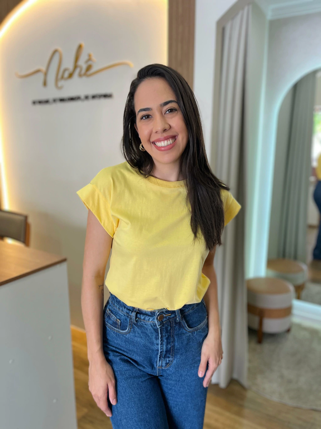 Confeccionada em 100% algodão, esta blusa oferece maciez e excelente respirabilidade para o dia a dia. A manga em muscle proporciona um toque de estilo diferenciado, garantindo conforto sem perder a elegância.